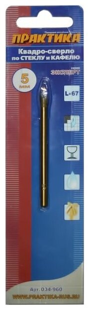 Equipment: piece, dimensions: 5x67 mm, shank type: cylindrical, quantity in a set package: 1 pc., drill material: HSS, for ceramic tiles, for glass