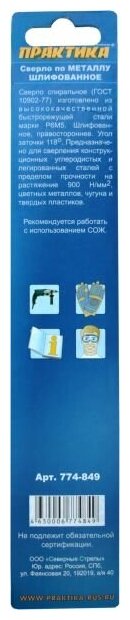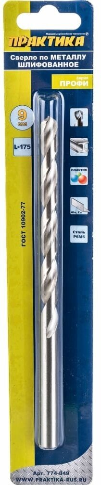 Equipment: piece, dimensions: 9x178 mm, shank type: cylindrical, quantity in the set package: 1 pc., drill material: HSS, sharpening angle: 118 degrees, for metal