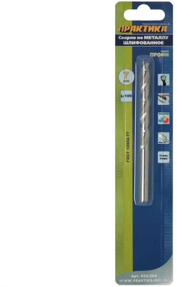Equipment: piece, dimensions: 7x69x109 mm, shank type: cylindrical, quantity in a set package: 1 pc., drill material: HSS, sharpening angle: 118 degrees, for metal