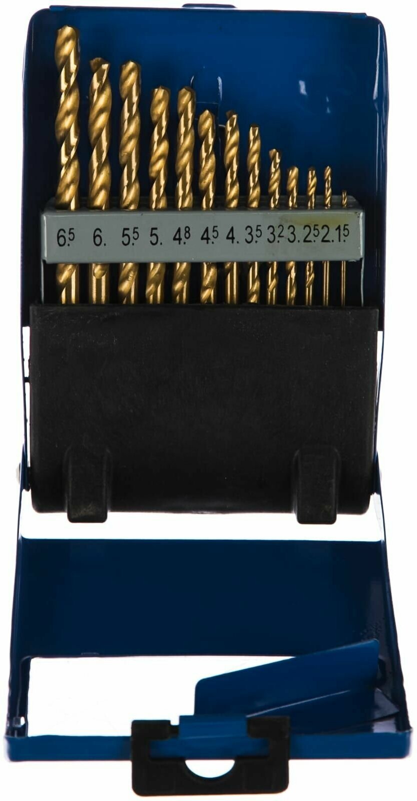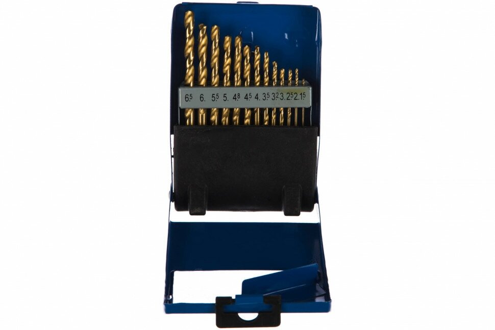 Standard sizes: for metal 1.5, 2, 2.5, 3, 3.5, 4, 4.5, 5, 5.5, 6, 6.5 mm, shank type: cylindrical, quantity in a set package: 13 pcs., drill material: HSS, for metal