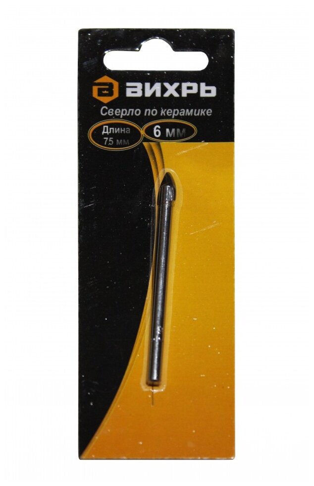 Equipment: piece, dimensions: 6x75 mm, shank type: cylindrical, quantity in a set package: 1 pc., for ceramic tiles, for glass