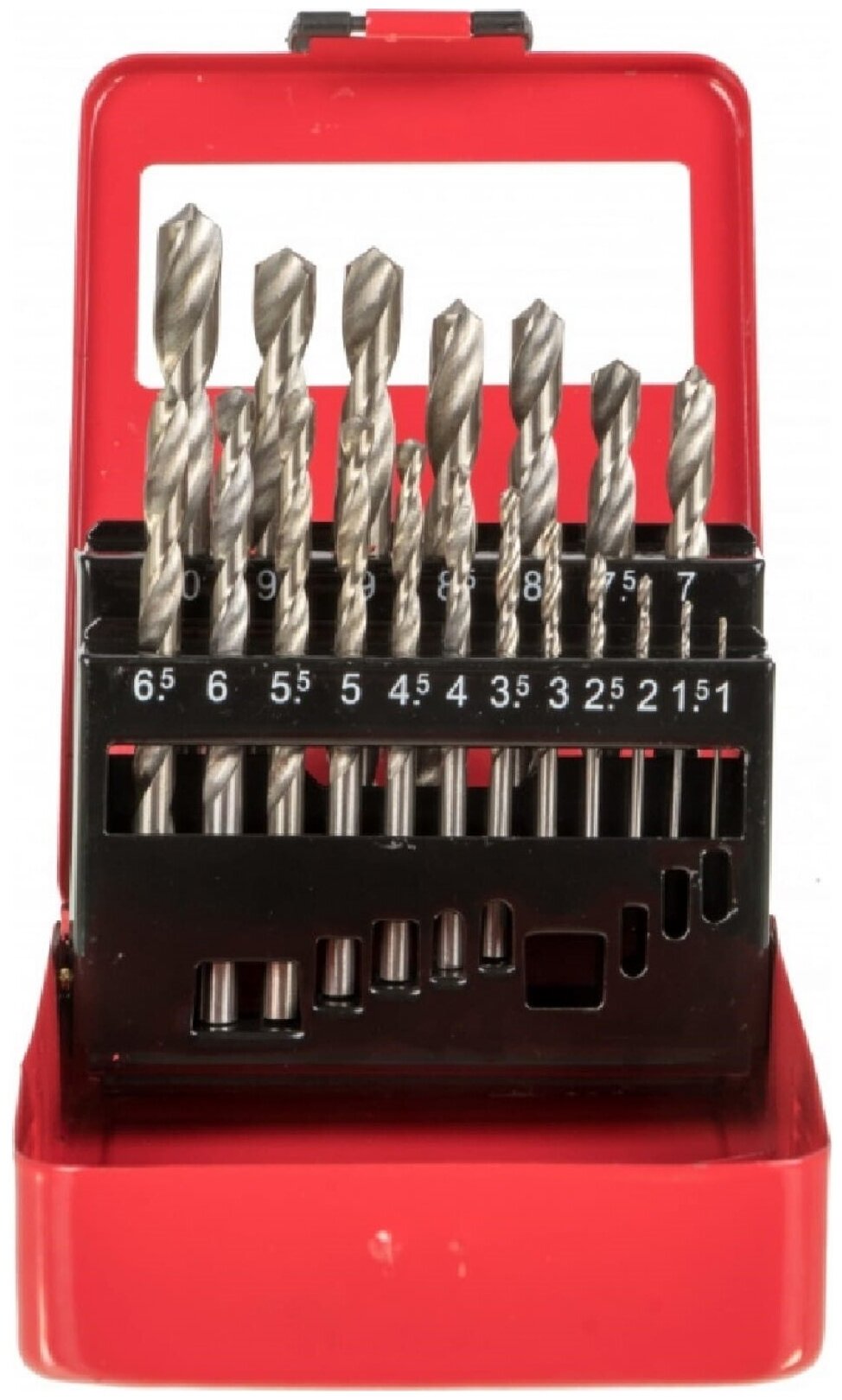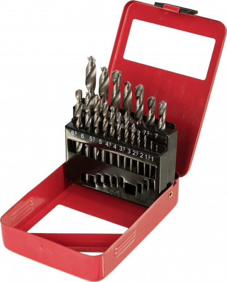 Metal drill set, 1-10mm through 0.5mm, HSS, 19pcs, metal box, cylindrical shank Whirlwind