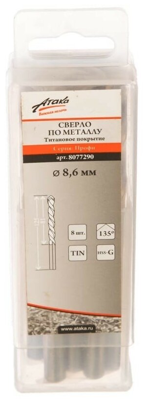 Dimensions: 8.6x81x125 mm, shank type: cylindrical, quantity per set per package: 8 pcs., drill material: HSS-G TiN, for metal
