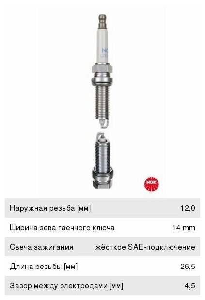 Thread size: M12, head size: 14 mm, incandescence: cold, central electrode material: nickel alloy, number of ground electrodes: 1, features: resistor