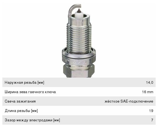 Thread size: M14, standard thread length: 19 mm, socket size: 16 mm, incandescence: medium, central electrode material: iridium, number of side electrodes: 1