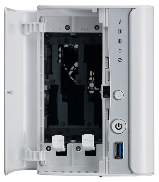 Number of storage slots: 2, processor: Intel Atom, RAM: 2 GB, Ethernet ports: 1000 Mbps, RAID support: RAID 0, RAID 1
