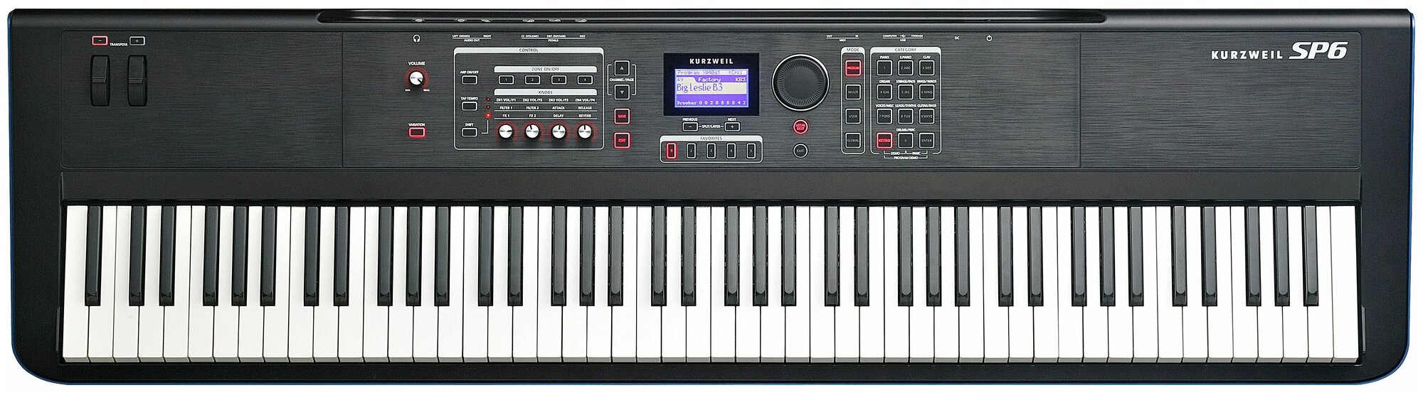 Number of keys: 88, key size: full size, keyboard hardness: weighted, hammer action, display, pedals: pluggable, pitch bend controller, modulation controller, body: compact, m