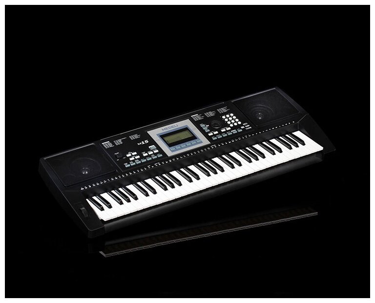 Number of keys: 61, key size: full size, display, pedals: pluggable, pitch bend controller, body: compact, auto accompaniment, song recording, metronome, learning, reverb, transposition
