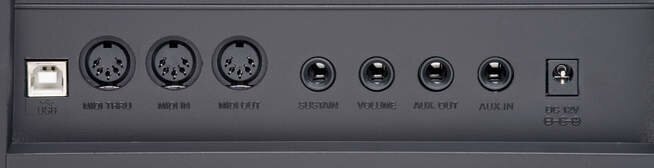 USB Type B, MIDI in, MIDI out, headphone out, line in, line out