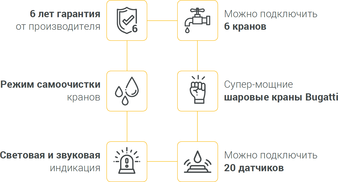 Sensor type: wired, response time: 21 s, features: autonomous power supply, Protection against leaks, Protection against leaks, Shut-off taps, Mechanical blocking, Shut-off taps, Smart home ecosystem: 1/2, Pro