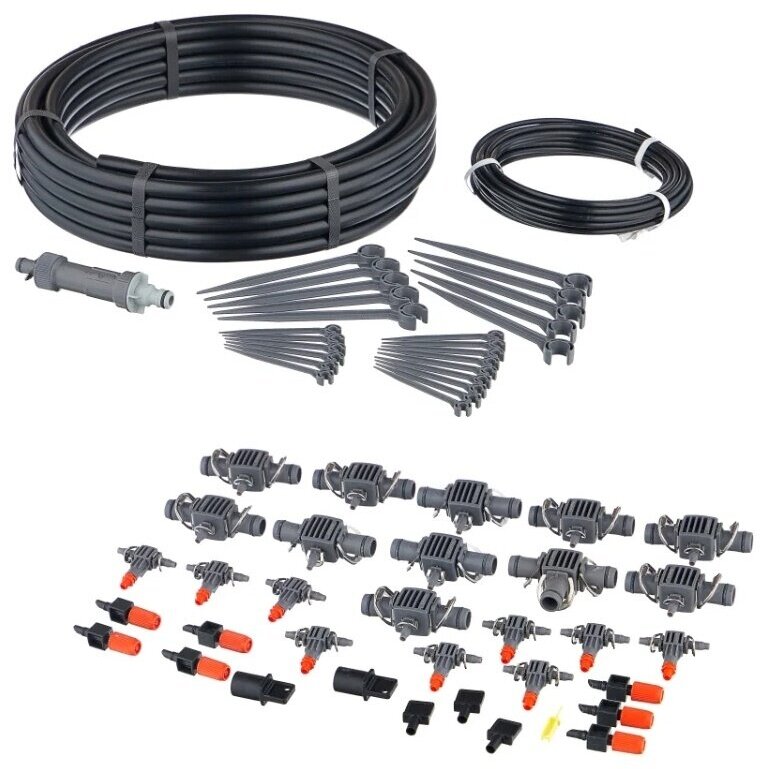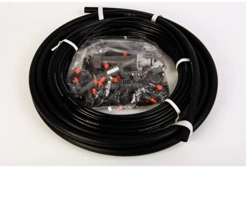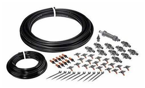 Master block - 1 pc,<br>main hose 15 m - 1 pc,<br>supply hose 10 m - 1 pc,<br>t-shaped connector 13 mm 1/2" 1 pc,<br>t- shaped connector - 10 pcs,<br>pegs for hose 4.6 mm 3/16" - 15 pcs,<br>pegs for hose 13 mm 1/2" - 10 pcs,<br>re