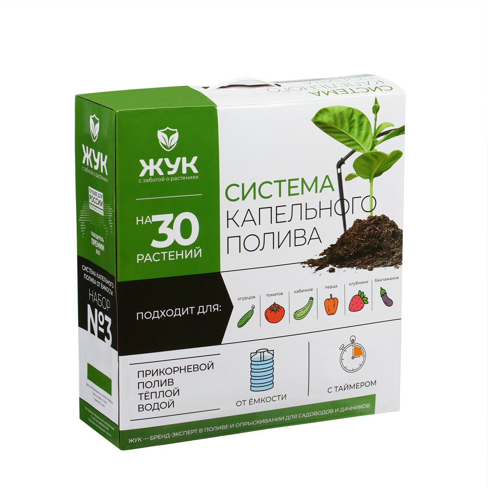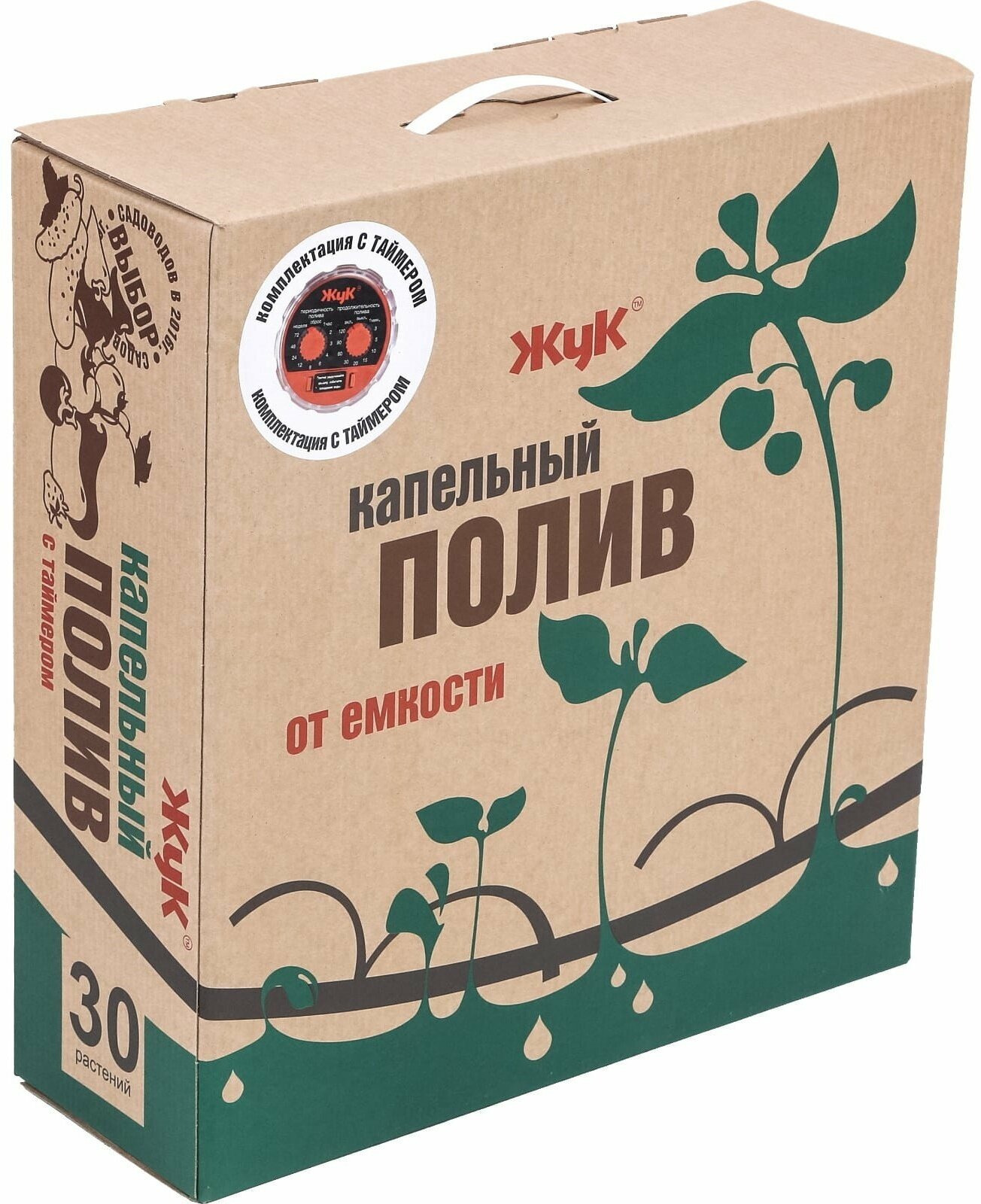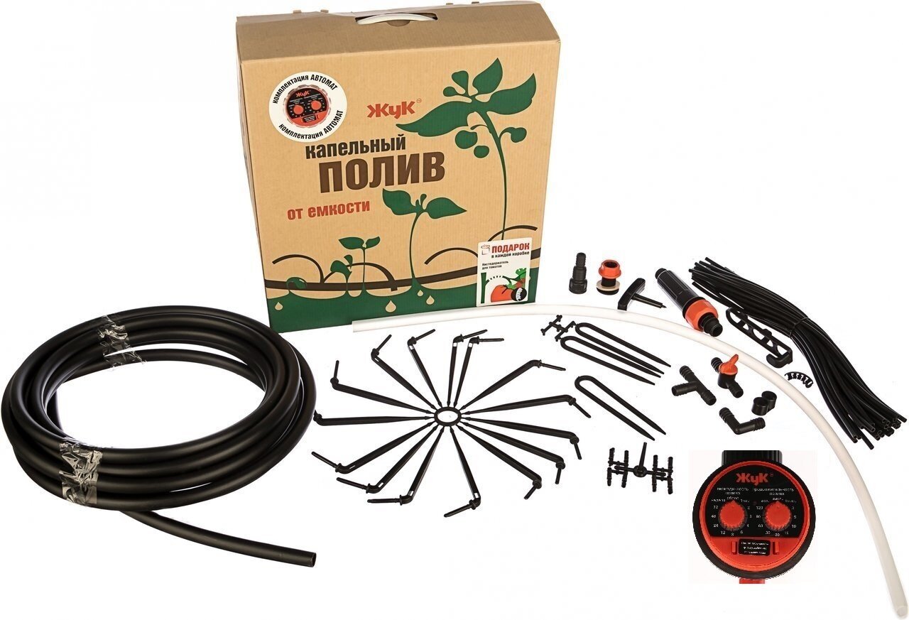 Electronic timer - 1 pc., main hose 9 m - 1 pc., supply hose 40 cm - 30 pcs., droppers - 30 pcs., connection to the tank - 1 pc., transparent level tube 1 m - 1 pc., hanger for level tube - 1 pc., small tee -