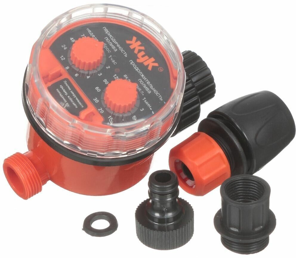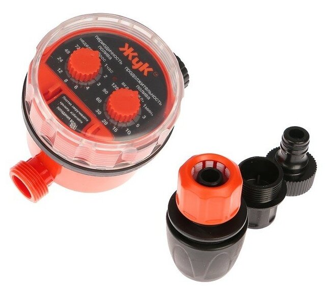 Working pressure 0.1-0.2 atm. provided by installing a barrel at a height of 1-2 m from the ground, water consumption per plant - 4 l/h; type of batteries for the timer - 2 x AAA/LR03 not included