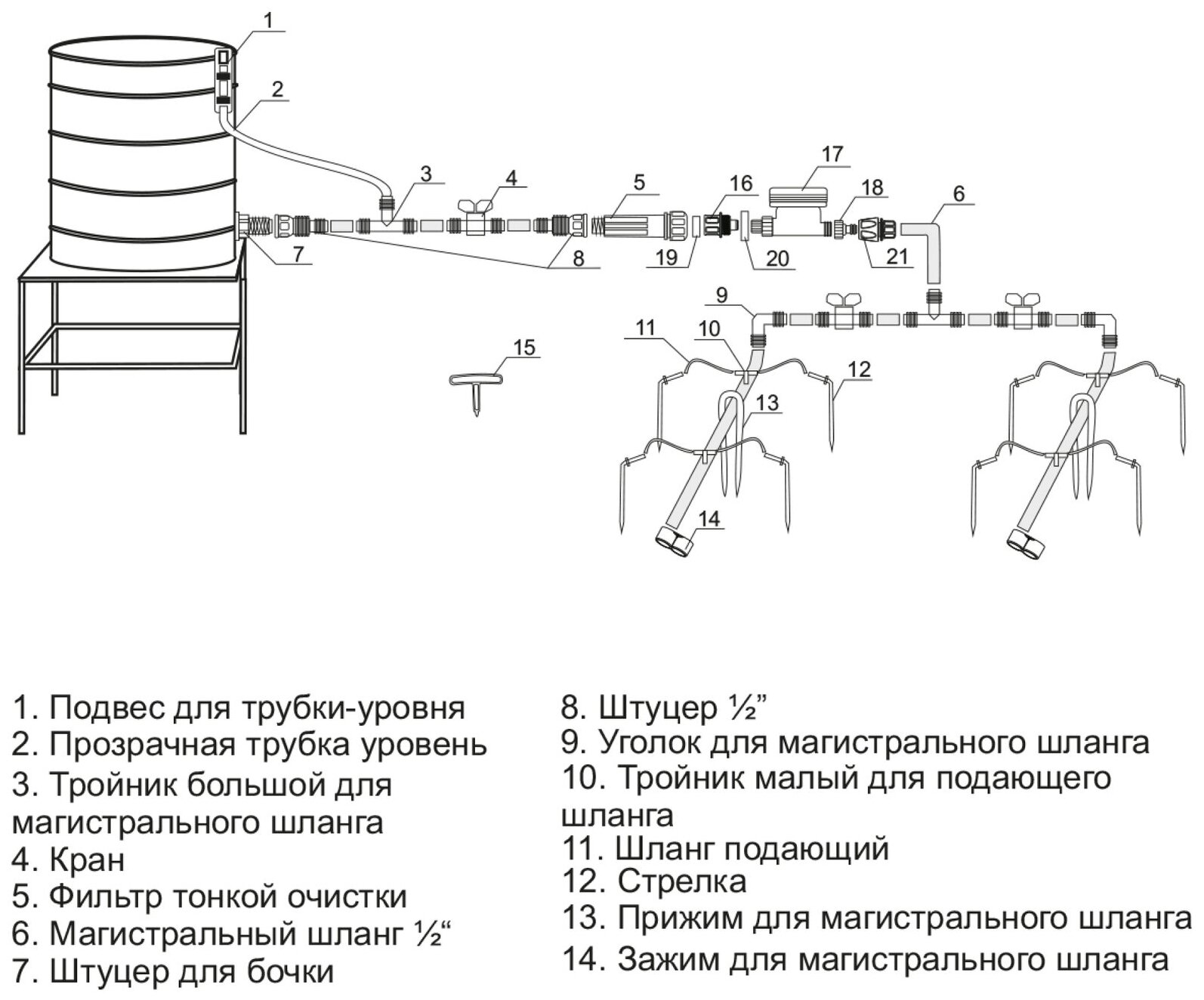 Type: drip irrigation kit, water intake: from tank, connection diameter: 1/2" 13 mm, maximum pressure: 0.20 bar