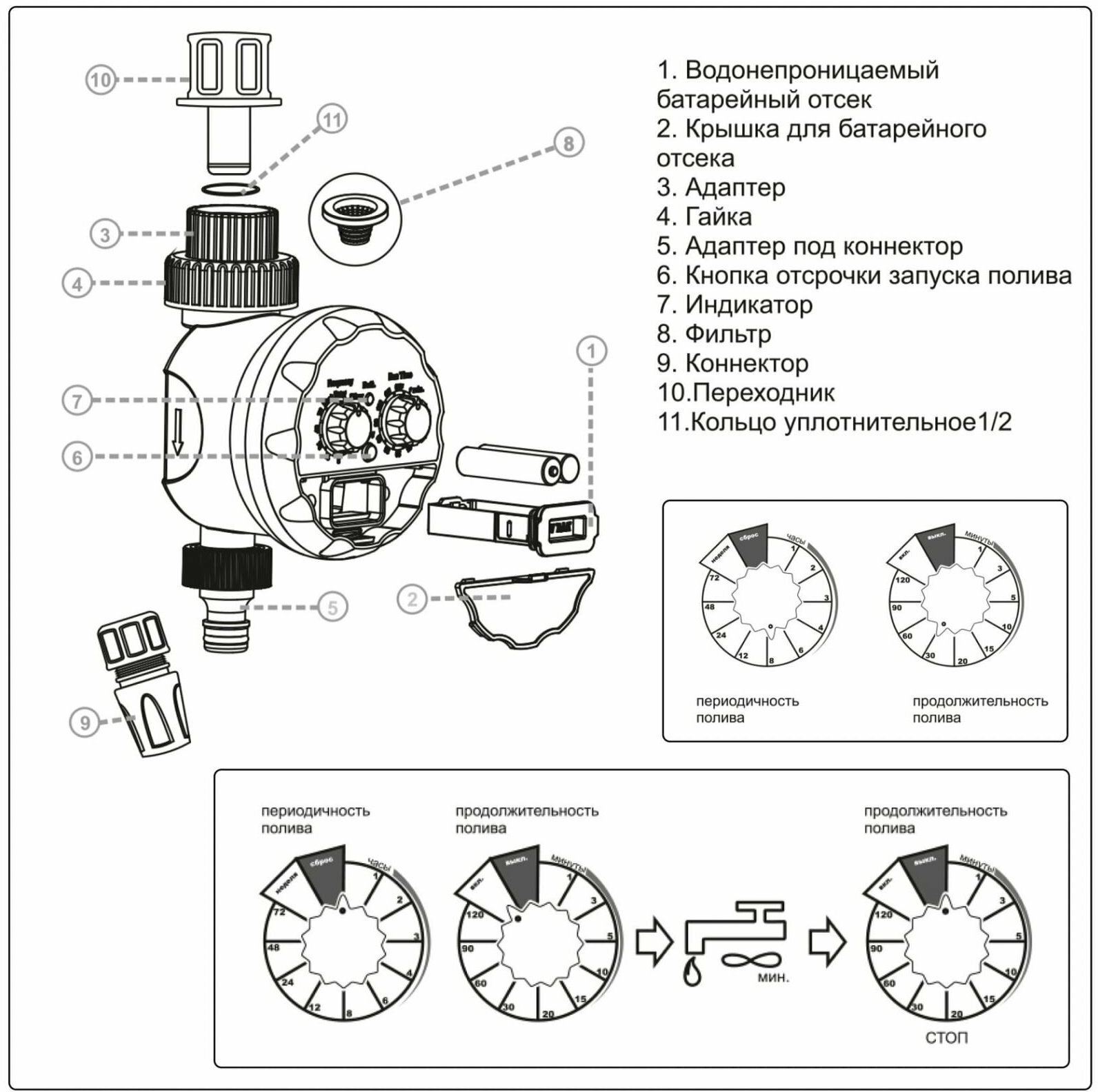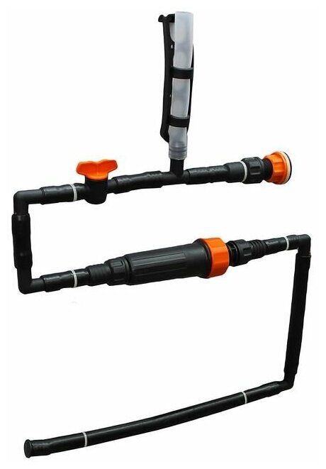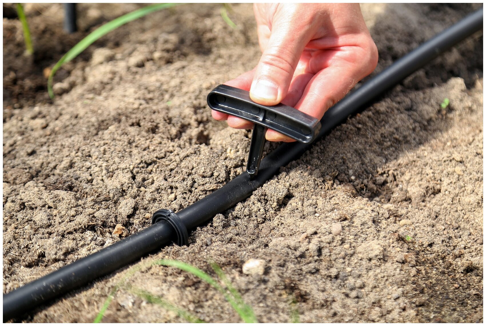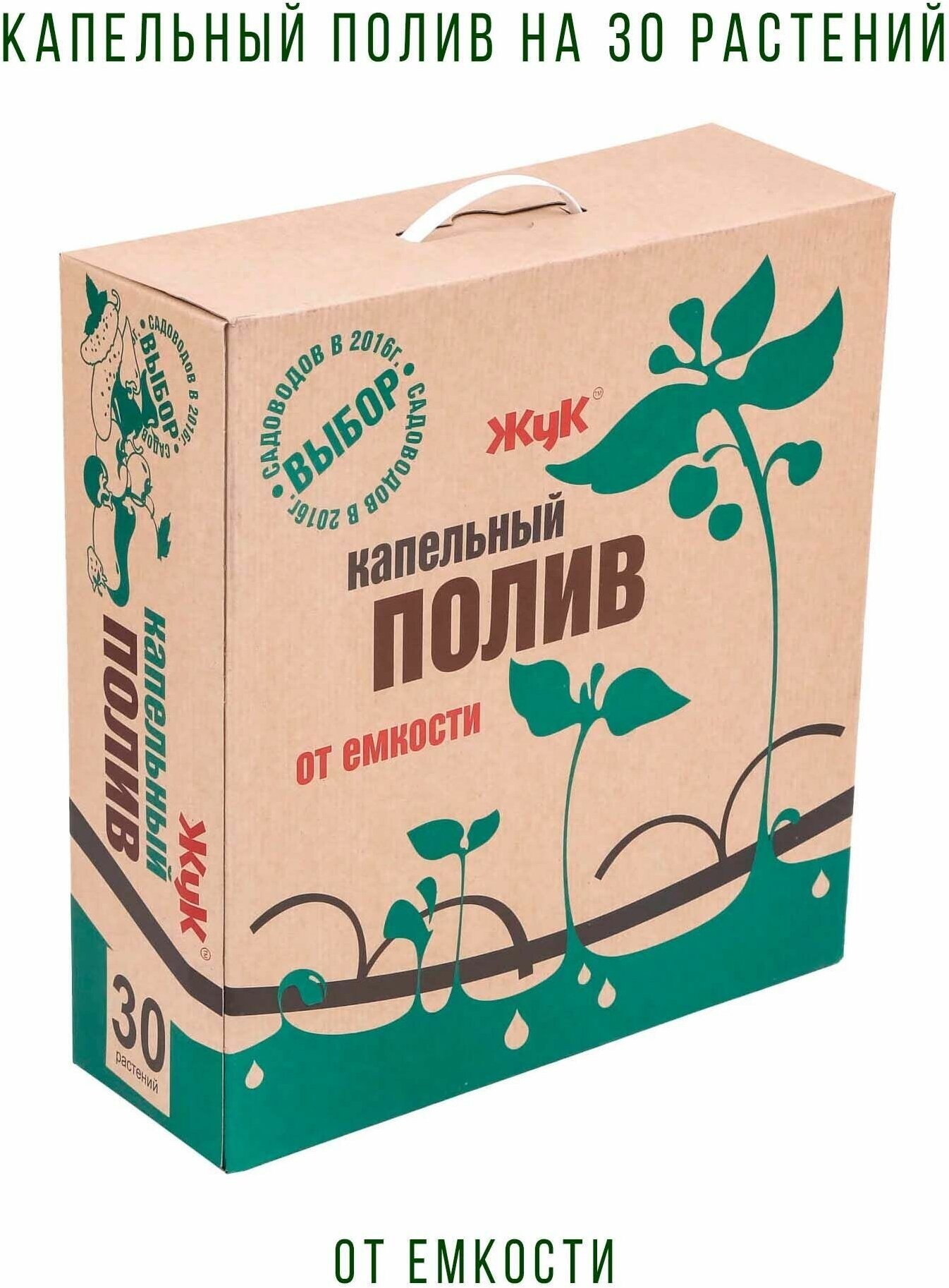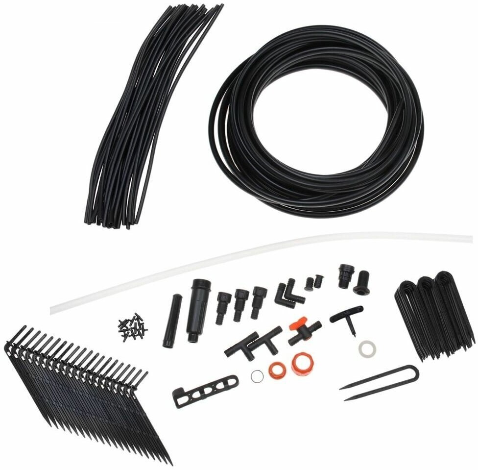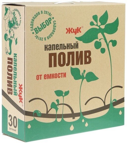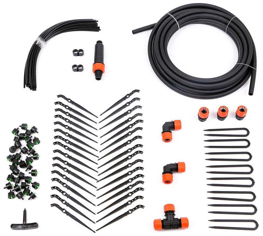 Connection to the tank - 1 pc., main hose 9 m - 1 pc., transparent level tube 1 m - 1 pc., suspension for the level tube - 1 pc., supply hose 40 cm - 30 pcs., droppers - 30 pcs. ., small tee - 15 pcs., faucet - 1 pc., corner for