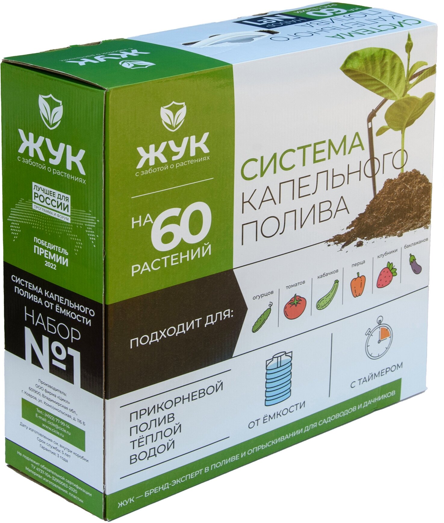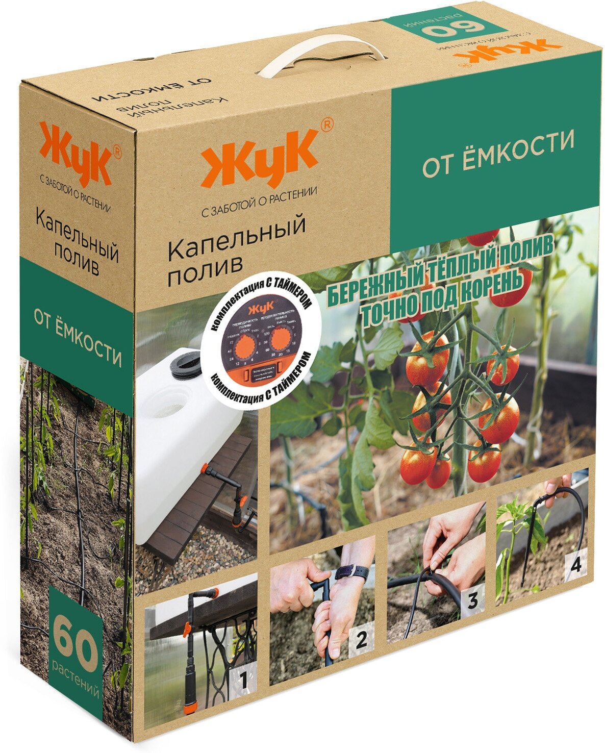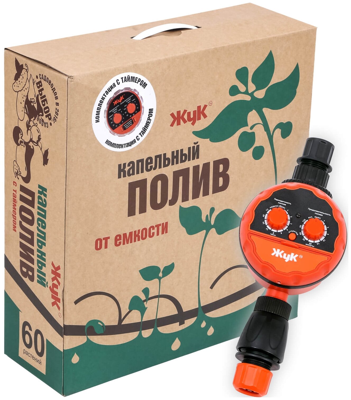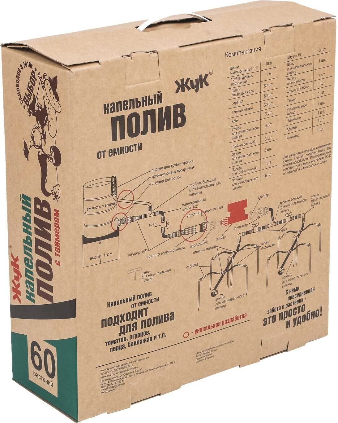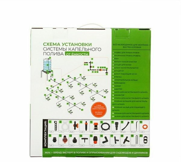 Type: drip irrigation kit, water intake: from tank, connection diameter: 1/2" 13 mm, maximum pressure: 0.20 bar, features: with timer