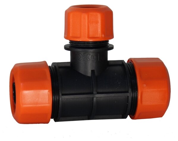 Type: tee for drip tape, connection diameter: 1/2" 13 mm, 3/4" 19 mm
