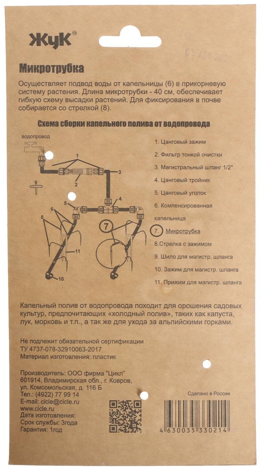 Type: micropipe for drip irrigation, water intake: from the water supply, from the tank