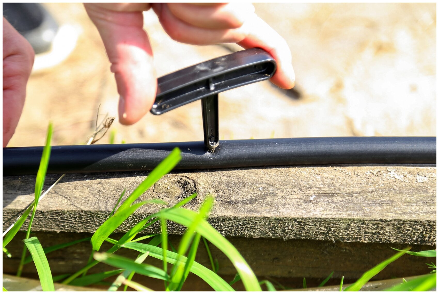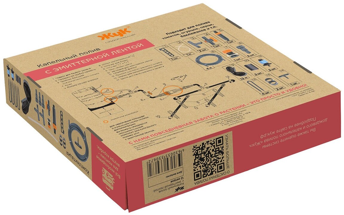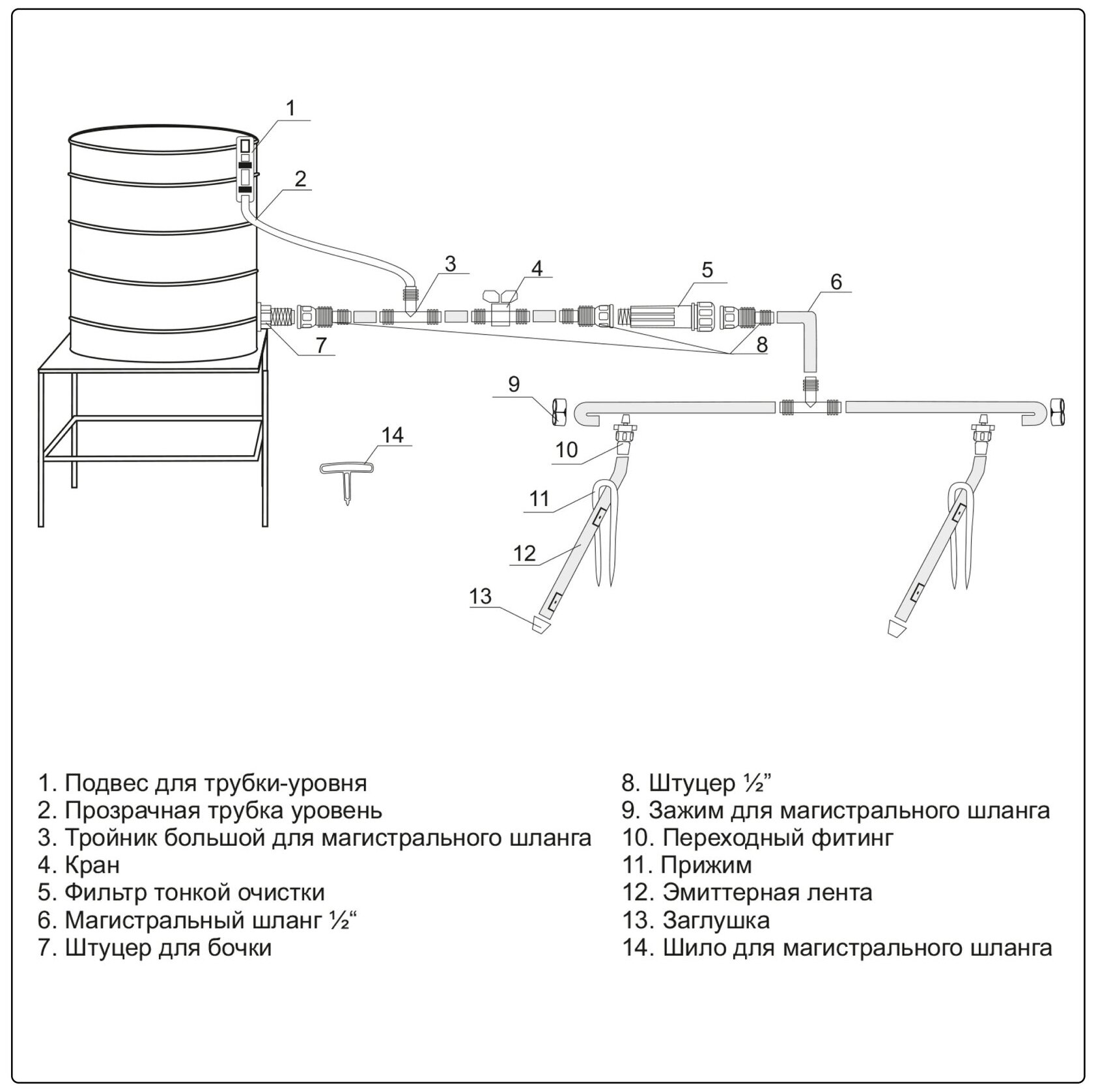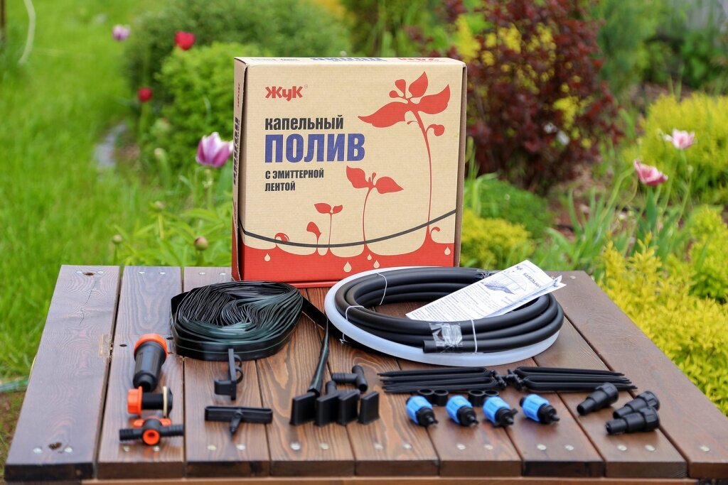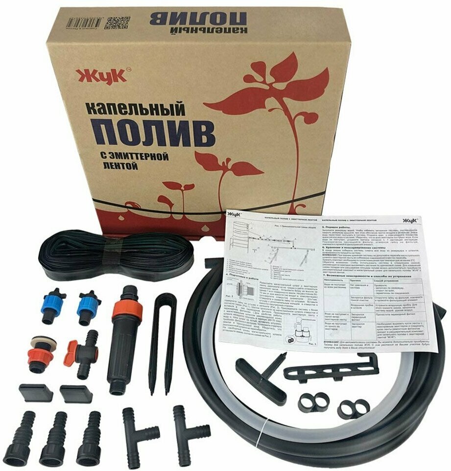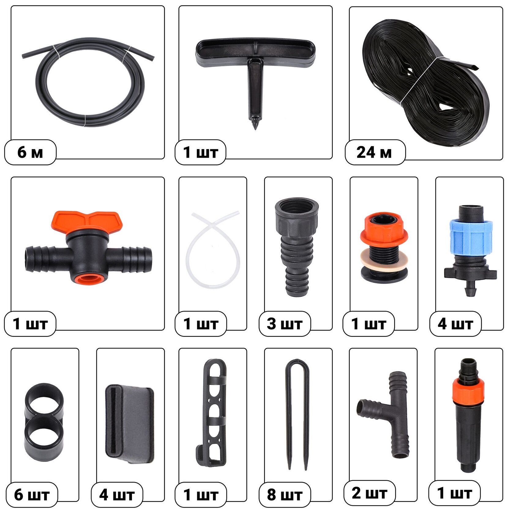 Master block - 1 pc,<br>main hose 15 m - 1 pc,<br>supply hose 10 m - 1 pc,<br>t-shaped connector 13 mm 1/2 1 pc,<br>t- shaped connector - 10 pcs,<br>pegs for hose 4.6 mm 3/16 - 15 pcs,<br>pegs for hose 13 mm 1/2 - 10 pcs,<br>re