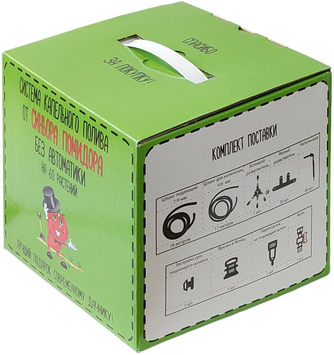 Equipment: Tie-in adapter - 1 pc, barrel tie-in - 1 pc, splitter with plug - 1 pc, hose 7/9 mm - 18 m, splitter - 30 pcs, supply hose plug - 3 pcs, hose 4/6 mm - 17 m, drip dispenser - 60 pcs.