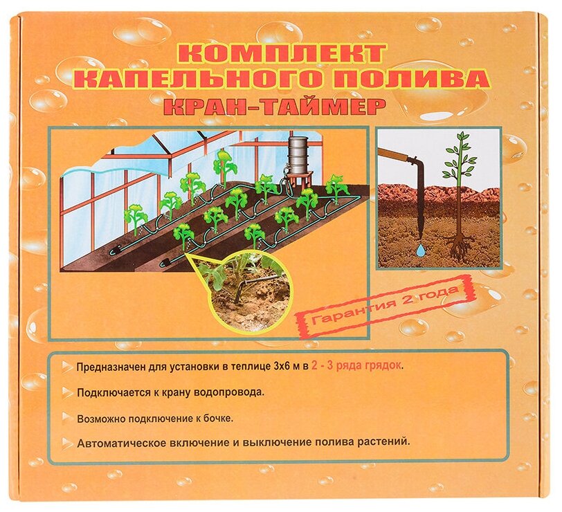 Type: drip irrigation kit, water intake: from the water supply, from the tank, maximum pressure: 6 bar