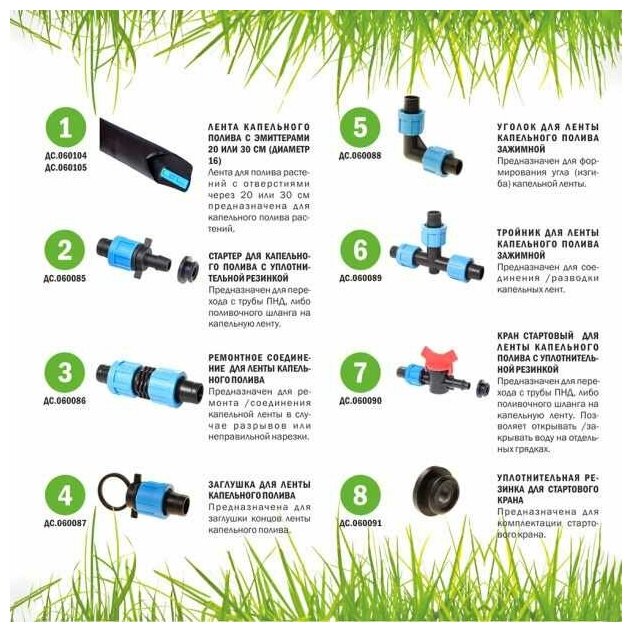 Type: drip irrigation kit, water intake: from the water supply, connection diameter: 16 mm