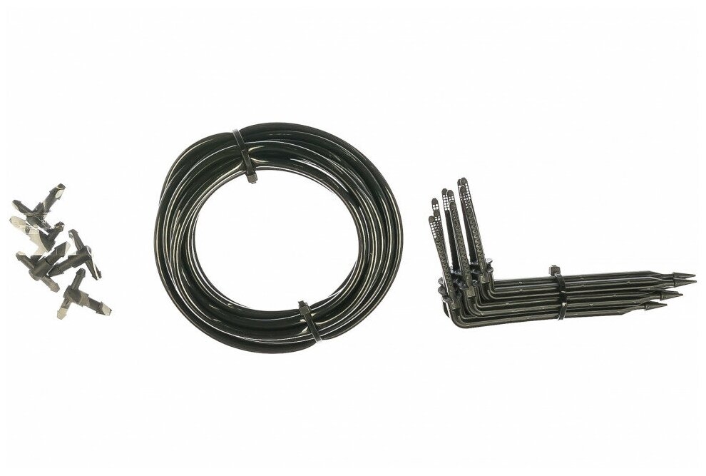 Dropper-peg - 10 pcs, micro-hose 4 x 6 mm - 10 pcs, tee - 5 pcs