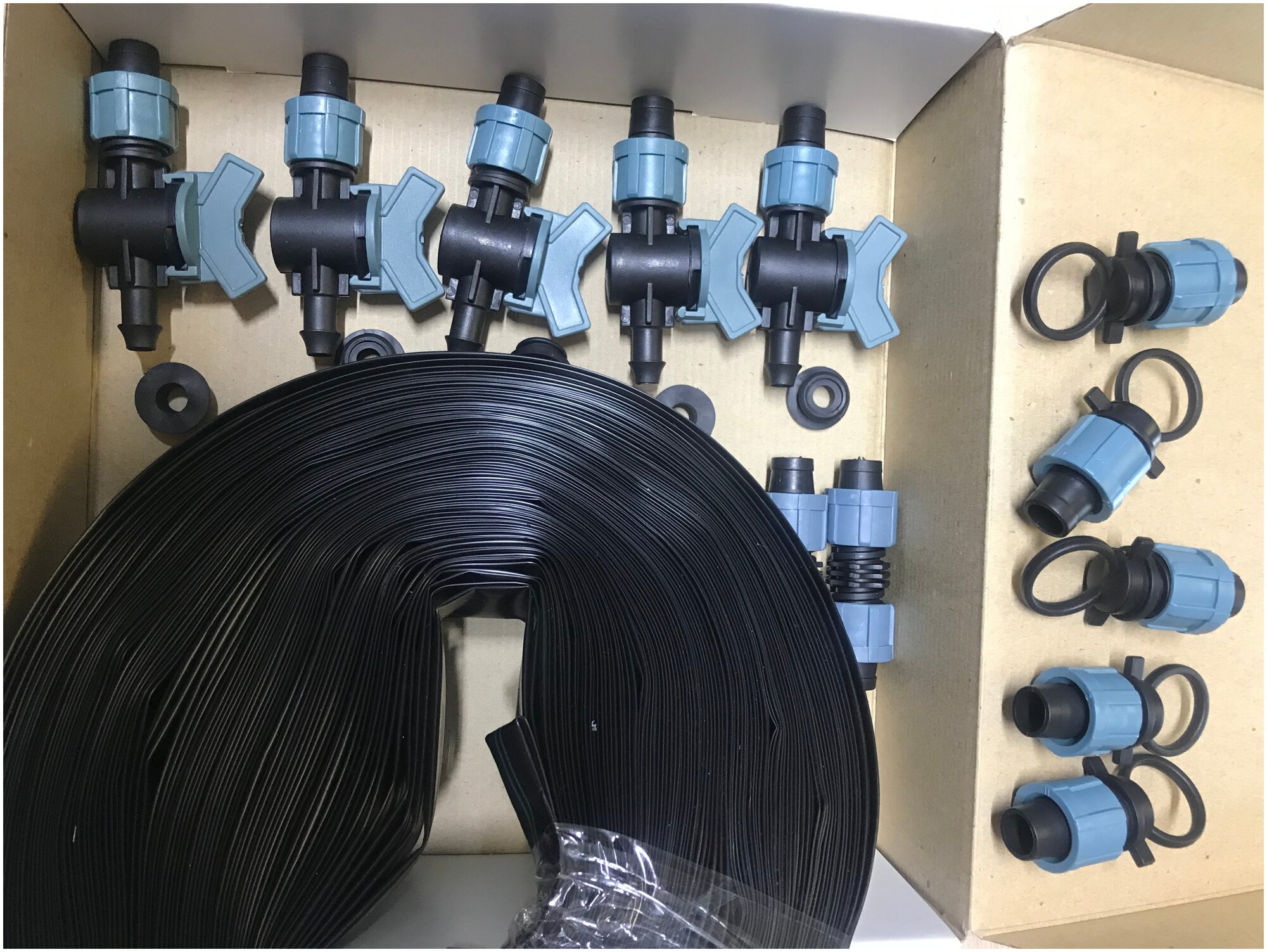Starting fitting with a tap - 5 pcs, repair fitting - 2 pcs, plug - 5 pcs, drip tape - 35 m