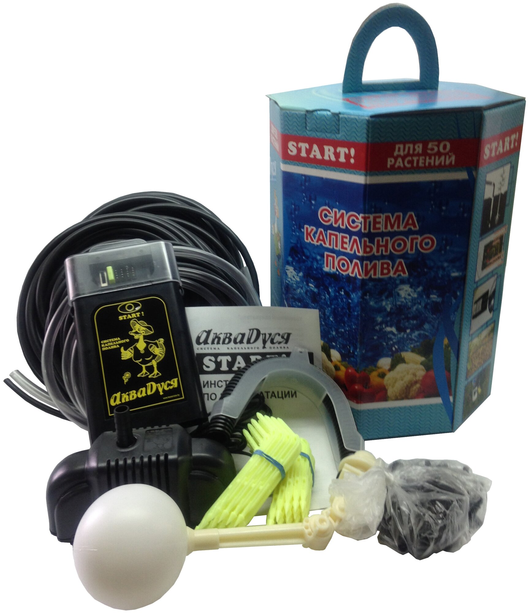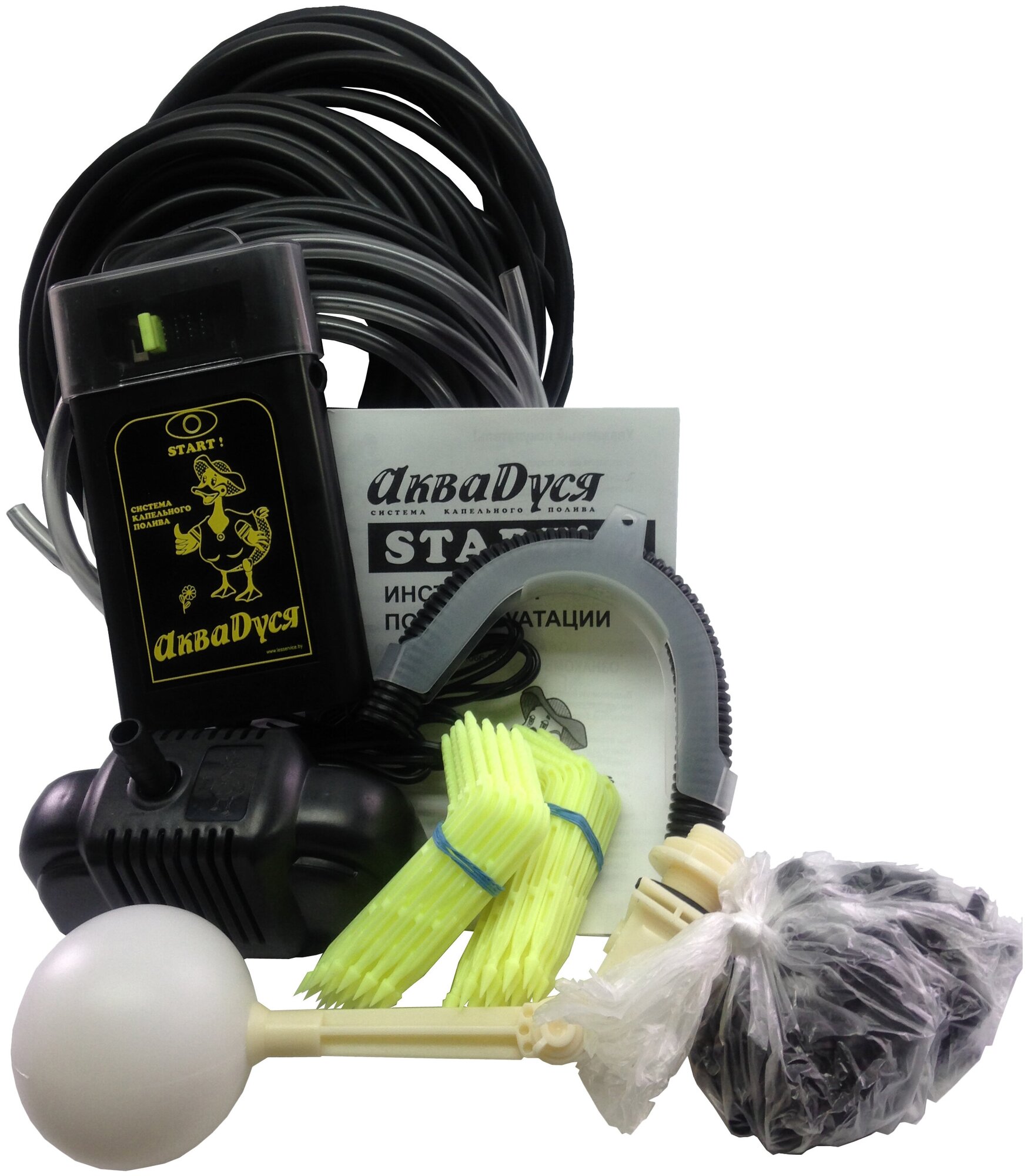 Hose 7/9 mm - 3 m, hose 12/16 mm - 2.5 m, hose 4/6 mm 10 m - 1 pc, supply hose 7/9 mm - 15 m, pump unit - 1 pc, control unit 12 c - 1 pc, droppers - 50 pcs, large tee - 1 pc, small tee - 25 pcs, staples - 4 pcs