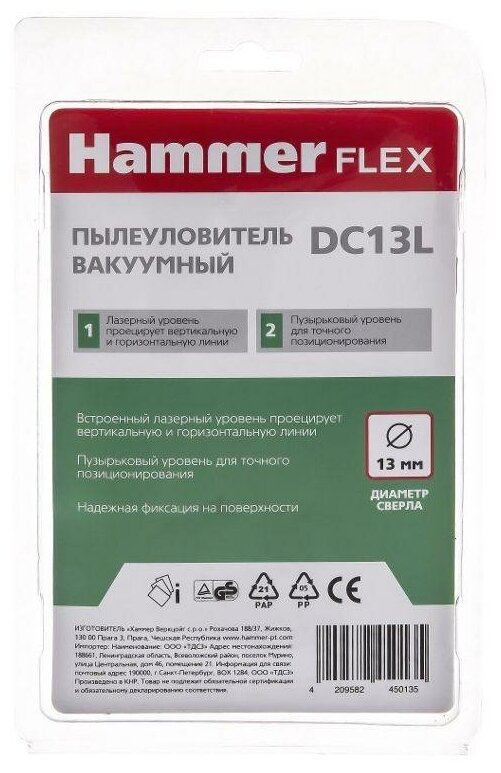 Type: dust extractor, powered by batteries, material: plastic, maximum drill diameter: 13 mm