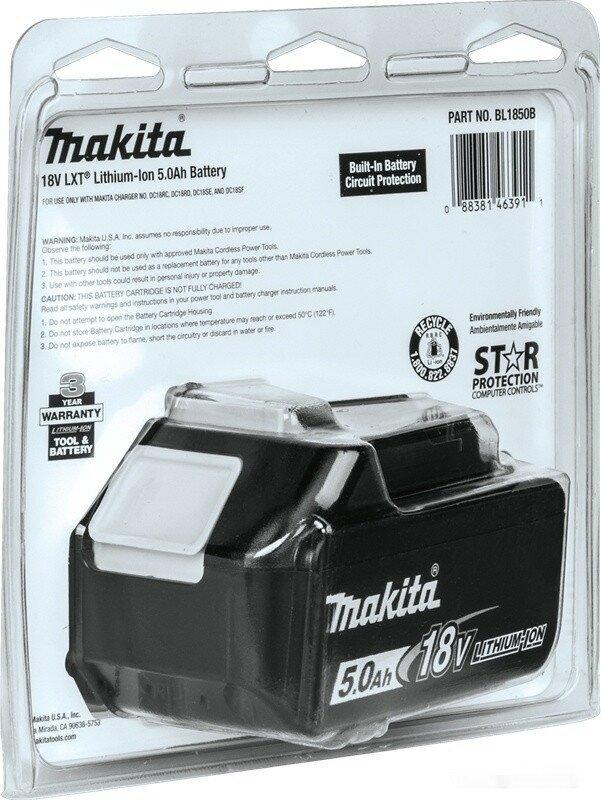 Compatible brand: Makita, type: Power tool battery, battery type: Li-Ion, battery design: slider, voltage: 18 V, capacity: 5 Ah, compatibility: for Makita LXT series tools