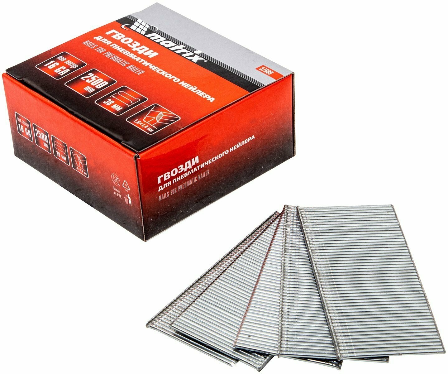 Item type: nails, Staples for construction stapler, staple type: 16GA, length: 38 mm, quantity per package: 2500 pcs., weight: 1.40 kg