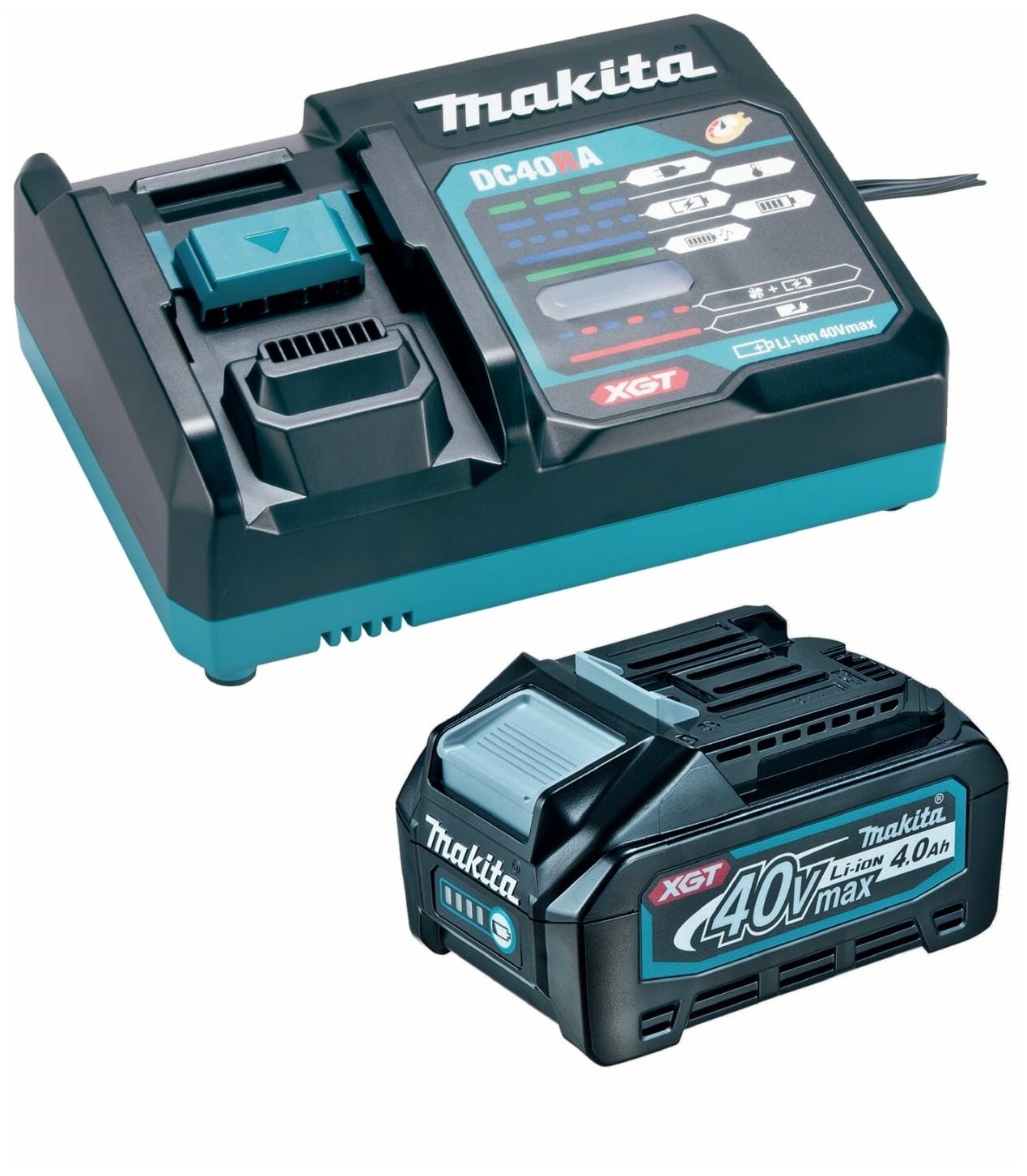 Compatible brand: Makita, type: kit, battery type: Li-Ion, battery design: slider, voltage: 40 V, capacity: 4 Ah, compatibility: XGT 40V Makita tool