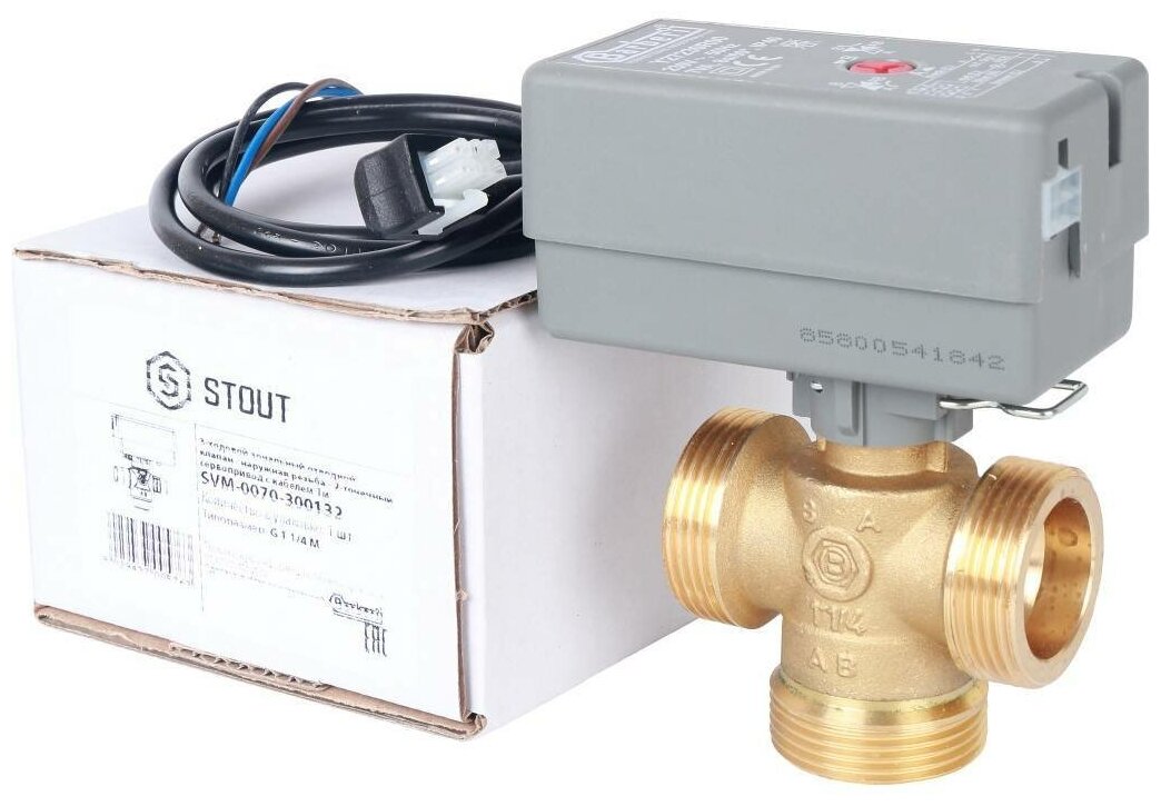 STOUT Compact 3-way zone valve, actuator 230V, with 1m cable, 1 1/4 M