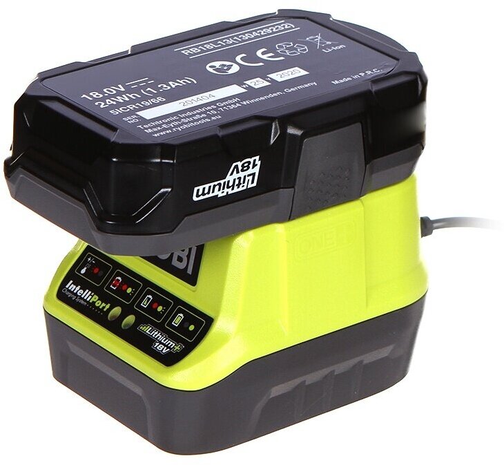 Compatible brand: Ryobi, type: kit, battery type: Li-Ion, battery construction: clip, voltage: 18 V, capacity: 1.30 Ah, maximum charge time: 0.75 h