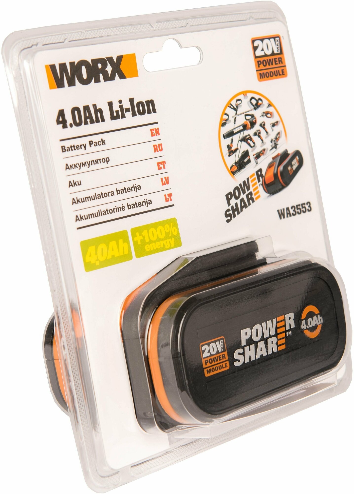 Compatible brand: WORX, type: battery, battery type: Li-Ion, battery design: slider, voltage: 20 V, capacity: 4 Ah, compatibility: all WORX 40 V tools