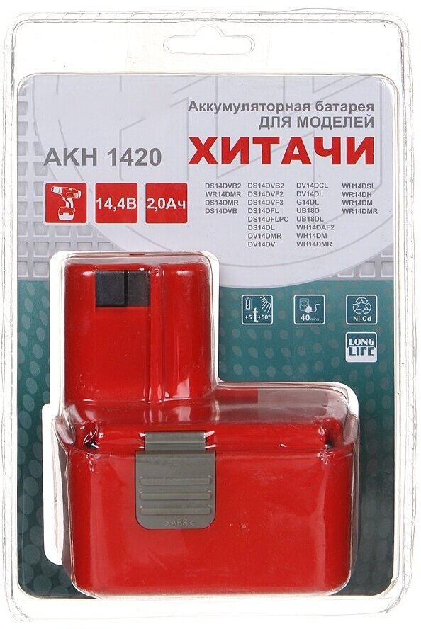 Compatible brand: Hitachi, type: power tool battery, battery type: Ni-Cd, battery construction: clip, voltage: 14.40 V, capacity: 2 Ah, compatibility: Hitachi DS14DVB2, Hitachi DS14DVF3, Hitachi UB18DL