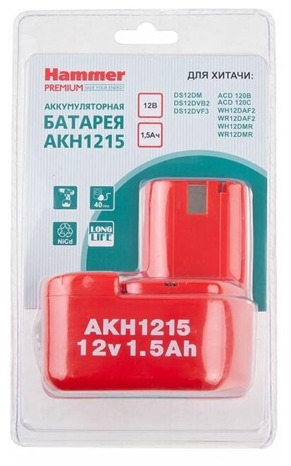 Compatible brand: Hitachi, type: power tool battery, battery type: Ni-Cd, battery design: clip, voltage: 12 V, capacity: 1.50 Ah, compatibility: Hitachi DS12DM, Hitachi DS12DVB2, Hitachi DS12DVF3, Hitachi WH12DAF2, Hitachi WR12DAF2, Hit