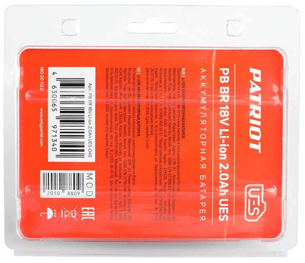 Compatible brand: PATRIOT, type: battery, battery type: Li-Ion, battery design: slider, voltage: 18 V, capacity: 2 Ah, compatibility: BR 181Li