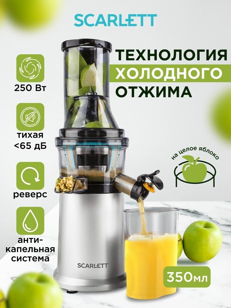 Type: centrifugal, power: 1200 W, mouth width: 85 mm, juice tank volume: 1 l, pulp tank volume: 2 l, number of speeds: 5, body material: stainless steel, features: automatic ejection
