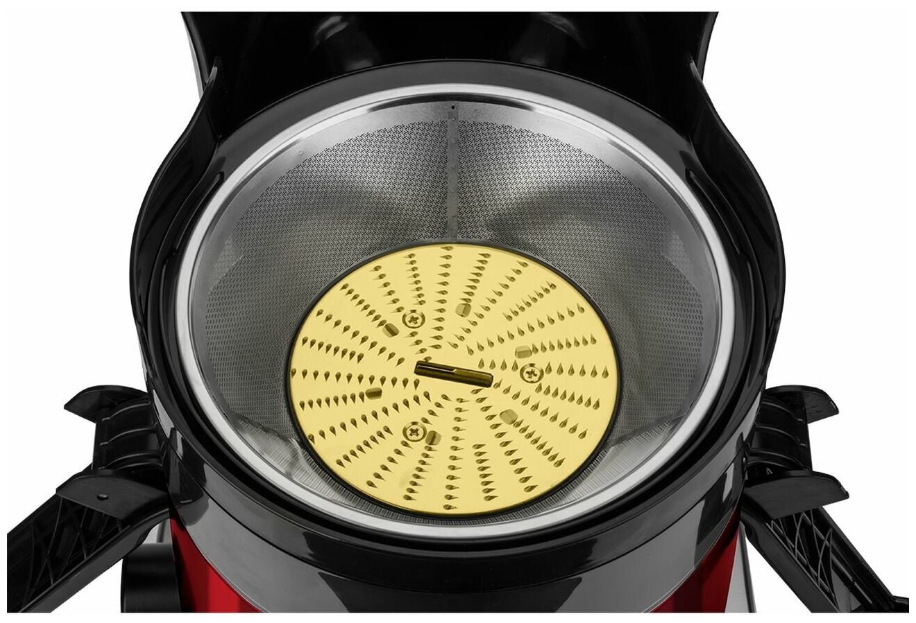 Type: centrifugal, power: 1200 W, mouth width: 85 mm, juice tank volume: 1 l, pulp tank volume: 2 l, number of speeds: 5, body material: stainless steel, features: automatic ejection