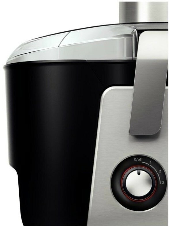 Type: centrifugal, power: 1200 W, mouth width: 85 mm, juice tank volume: 1 l, pulp tank volume: 2 l, number of speeds: 5, body material: stainless steel, features: automatic ejection