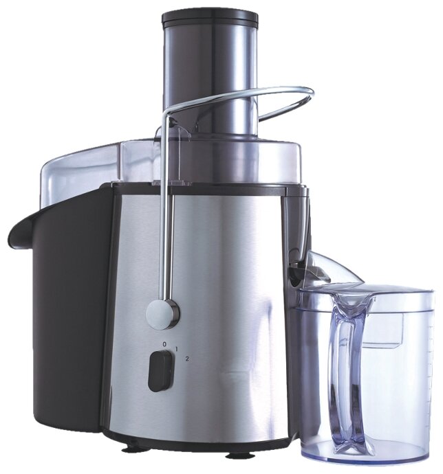 Type: centrifugal, power: 850 W, number of speeds: 2, body material: stainless steel, features: automatic pulp ejection, protection against accidental activation, drip-stop system, direct juice supply system