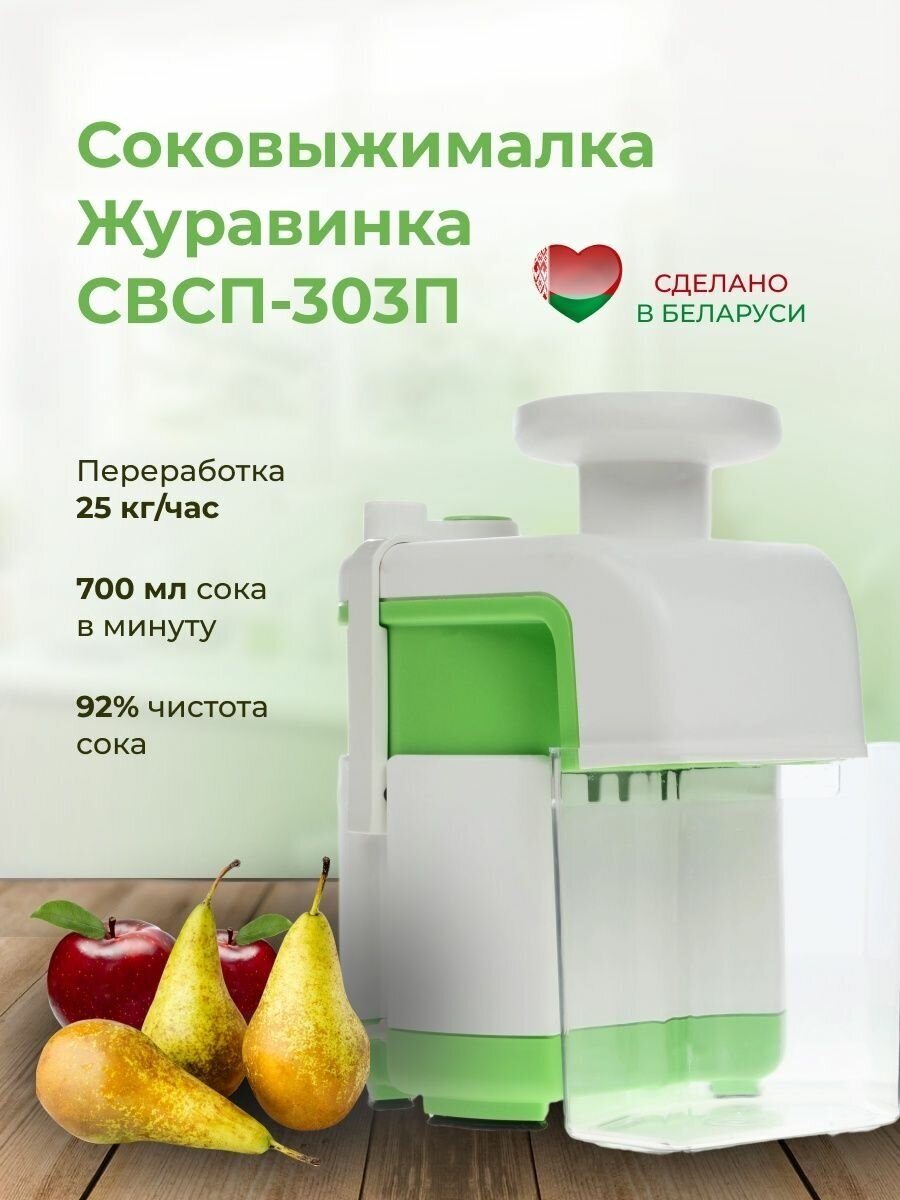 Allows for small and large shredding, slicing, grinding vegetables and fruits, juice purity - 92%; performance when squeezing juice is not less than 550 g / min; juice tank: glass; mesh material