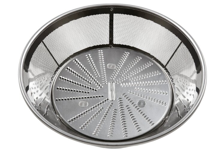 Juice tank: glass; mesh material: stainless steel steel; maximum rotation speed: 8350 rpm; neck height: 115 mm; cleaning brush