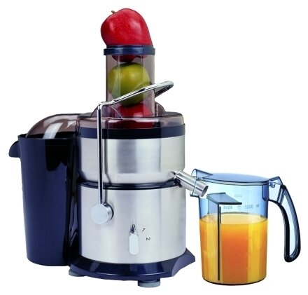 Description: Type: centrifugal, power: 1200 W, mouth width: 85 mm, juice tank volume: 1 l, pulp tank volume: 2 l, number of speeds: 5, body material: stainless steel, features: automatic ejection