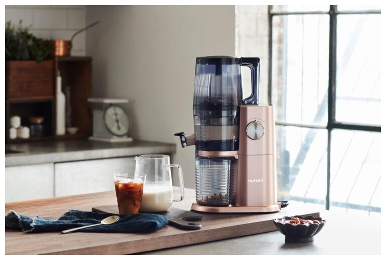 2 loading trays; number of screws: 1; juice tank: glass; maximum rotation speed: 60 rpm; loading tray