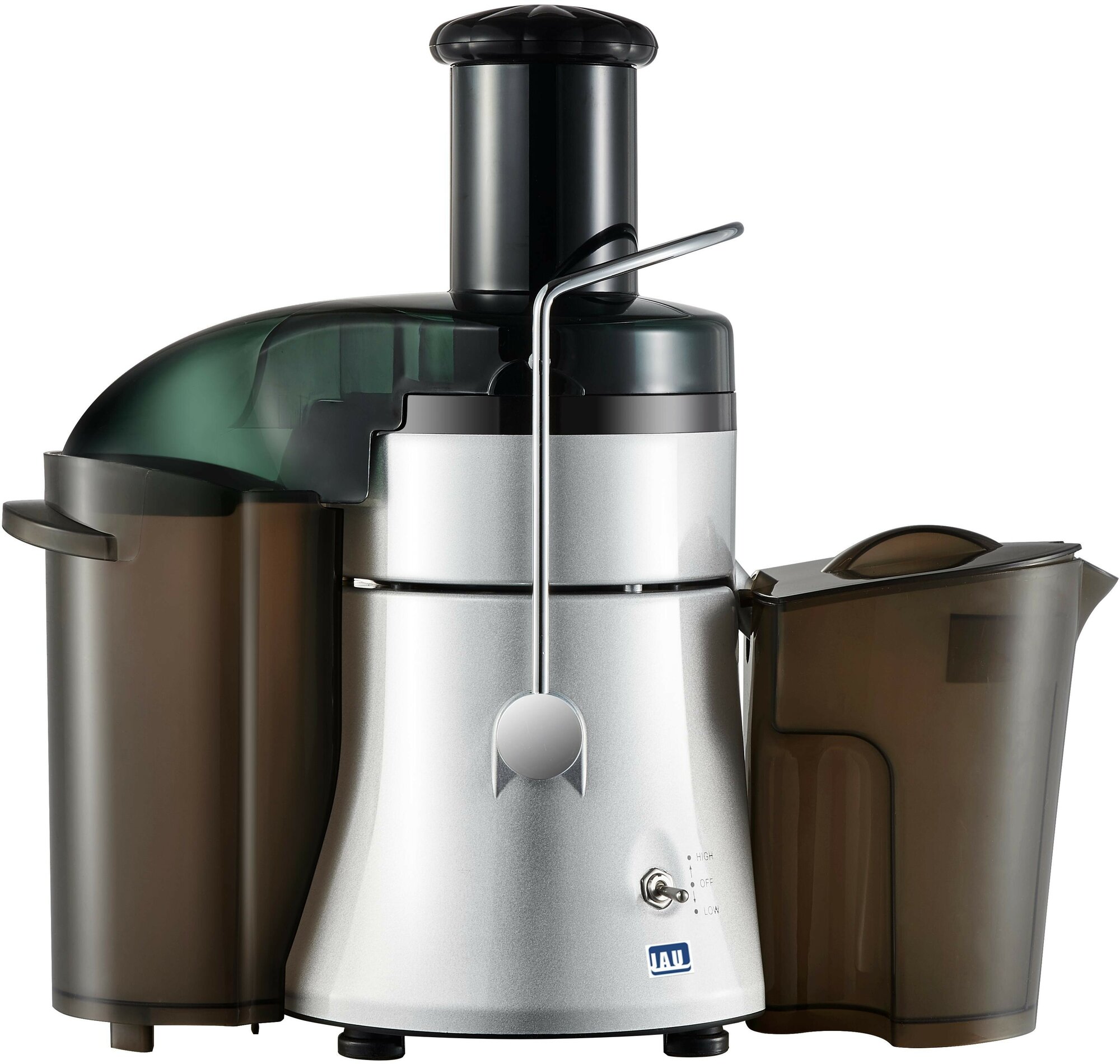 Type: centrifugal, power: 800 W, mouth width: 80 mm, juice tank volume: 2 l, pulp tank volume: 5 l, number of speeds: 2, body material: aluminum, stainless steel, plastic, features: automatic