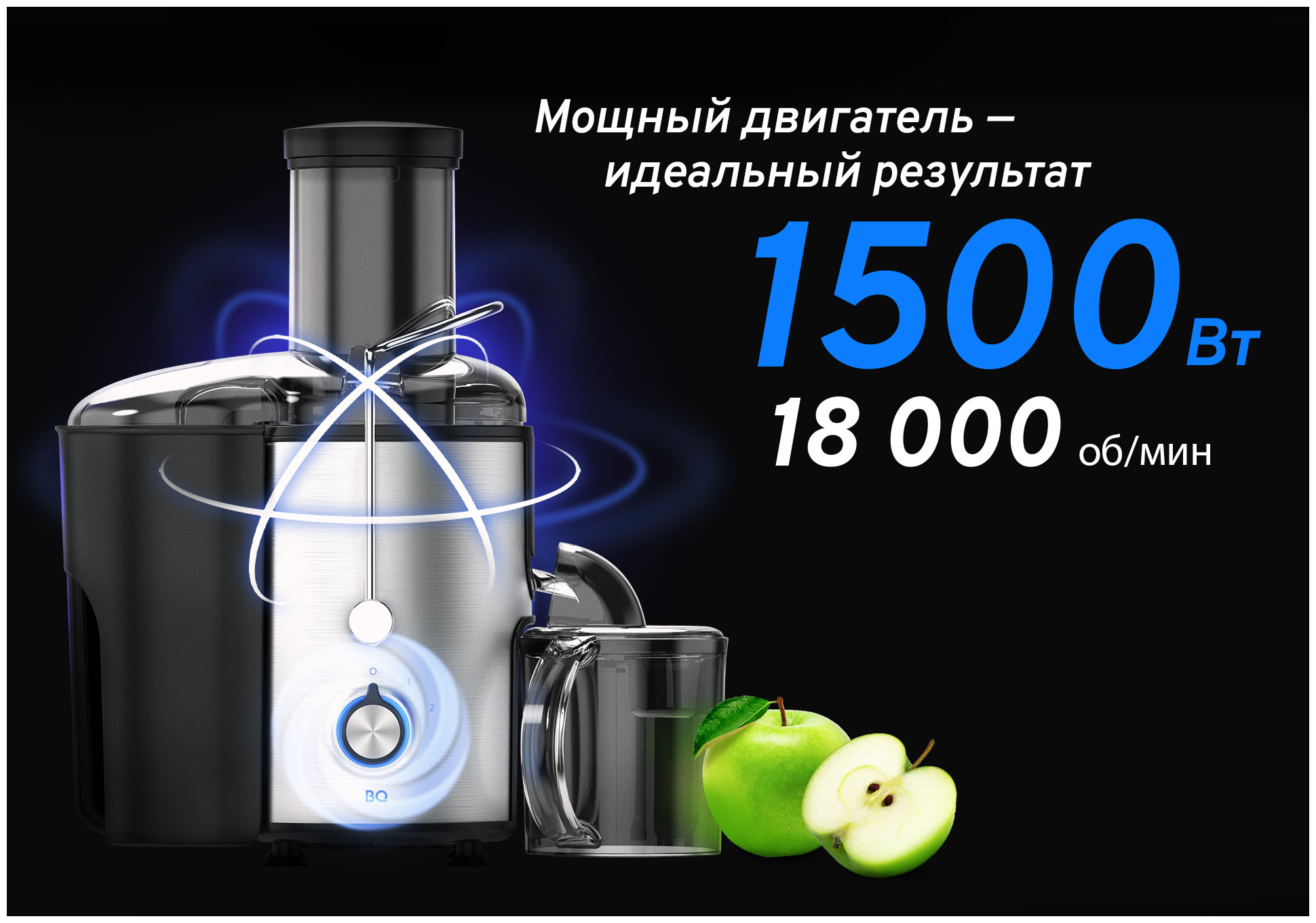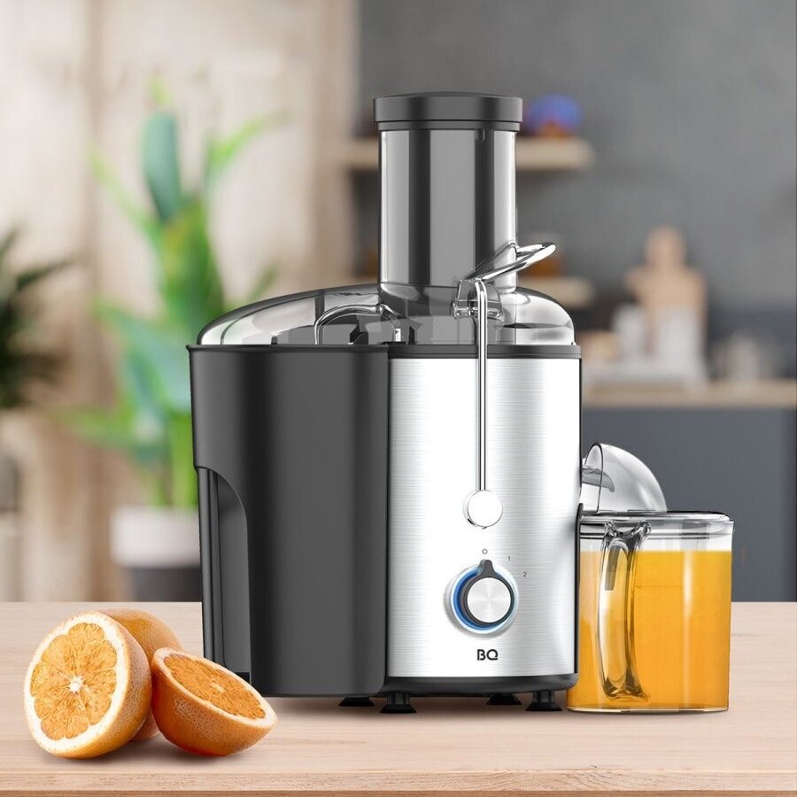Type: centrifugal, power: 1500 W, mouth width: 85 mm, juice tank volume: 1 l, pulp tank volume: 1.80 l, number of speeds: 2, case material: stainless steel, plastic, features: protection against overflow