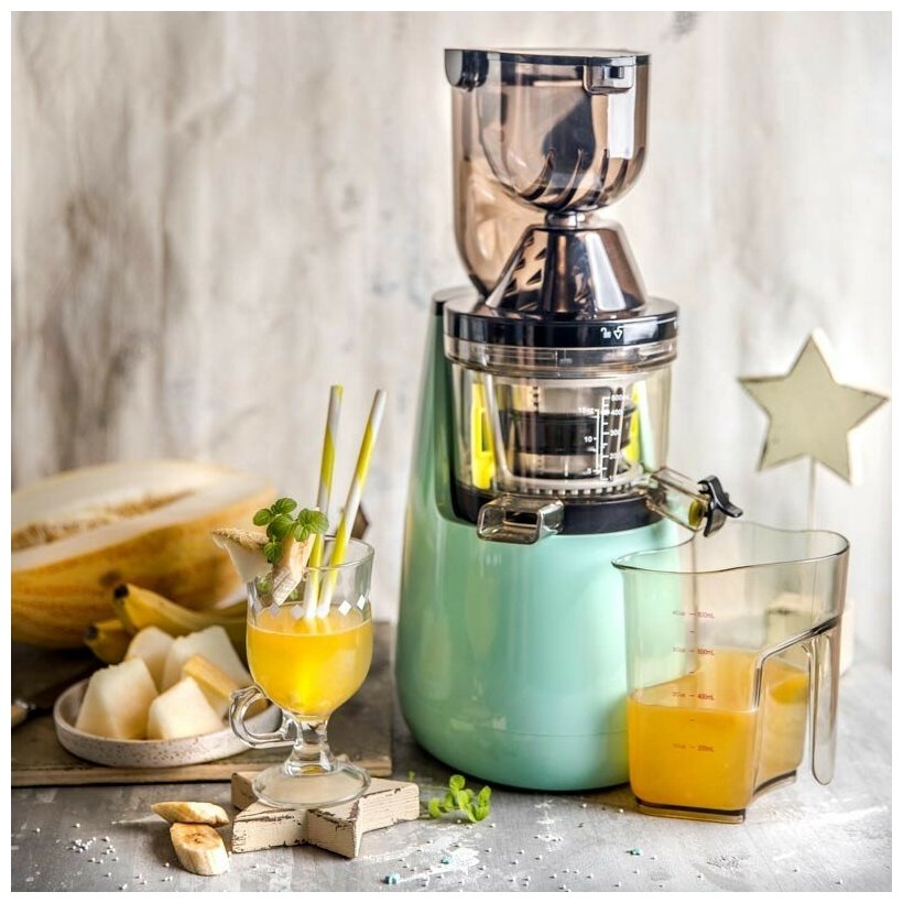 Automatic pulp ejection, juice level indicator, pulp quantity adjustment, drip-stop system, direct juice system
